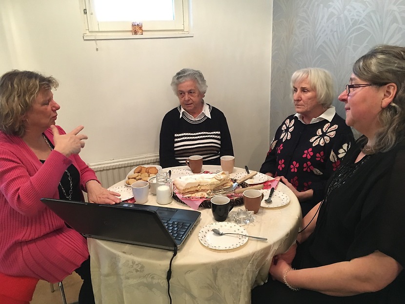 En riktig trivselträff med goda samtal och skratt! Den hembakade jordgubbstårtan avnjöjts och doggybags delades ut.