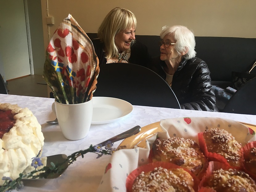 En riktig trivselträff med goda samtal och skratt! Den hembakade jordgubbstårtan avnjöjts och doggybags delades ut.