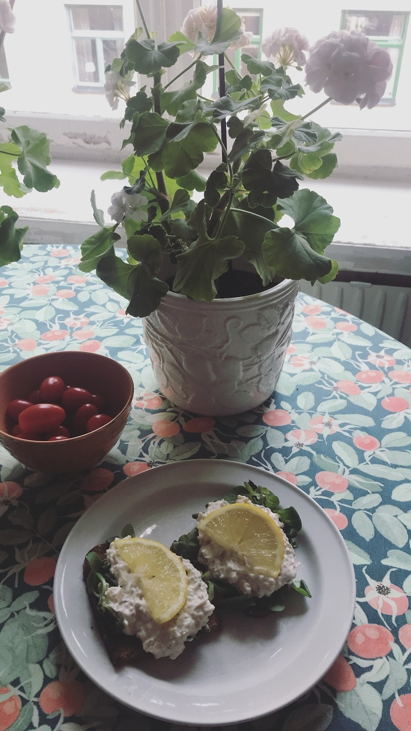 Men vi måste göra någonting här och nu. Och i väntan på jultomten kan vi ersätta timmar för långkok med ett ärligt och gediget engagemang och idérikedom av vår personal. Se här, en härlig räkröra på rågbröd med citron och tomater!